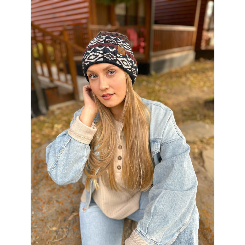 This stylish Aztec pattern beanie offers rustic charm and timeless warmth, made from part recycled materials. It blends sustainability with cozy comfort, making it the perfect accessory for crisp autumn walks and chilly winter days. Its strong, traditional knit pattern brings a touch of heritage style, while the soft, stretchy fit keeps you snug without sacrificing comfort. Pair it with your favourite fall sweater or winter coat for an effortlessly chic look.