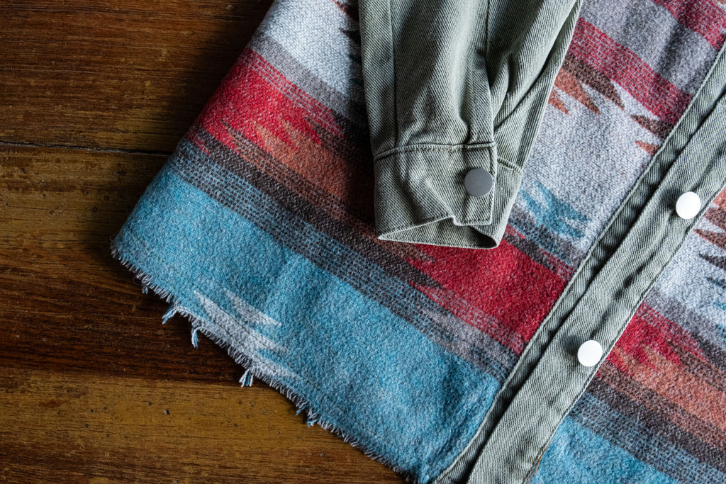 This women's shacket with bold Aztec print combines vintage charm with a modern flair. Available in green and blue denim, this distressed jacket features a turn-down collar and long sleeves, making it a versatile design perfect for layering. The button-down front adds classic appeal, while the Aztec pattern detail brings a unique boho touch. Get this lightweight and comfortable jacket today!