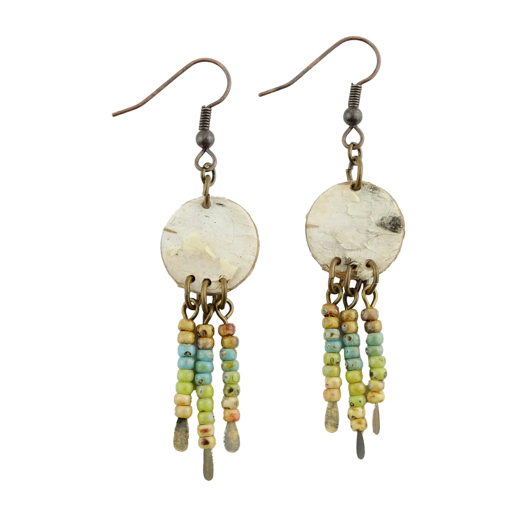 These elegant 0.5" birch bark earrings are a beautiful fusion of nature and artistry. Each earring features a delicate beaded paddle design on a natural birch bark circle. Lightweight and unique, these earrings are ideal for everyday wear.