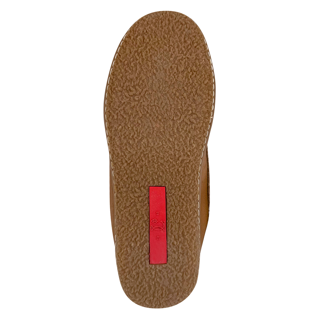 These women's moccasin shoes offer the best comfort and fashionable accents. They are crafted from genuine leather in a Cork colour. These women's Native American-style moccasin shoes feature a stylish fringe around the opening and are ankle height. They have rawhide leather laces that go up the moccasin to tighten them for a comfortable fit. Part of what makes these rubber-soled outdoor ladies' moccasin shoes stand out is the unique hand-embroidered design on the vamp. They have a padded insole for extra cushioning, and the lining is genuine suede which feels nice and soft against your skin. These women's moccasin shoes have a rubber sole that features a lot of tread and texture. We carry sizes 5-10 in this style of women's moccasin. They fit true to size, for half sizes go up to the nearest full size (8 ½ order size 9).