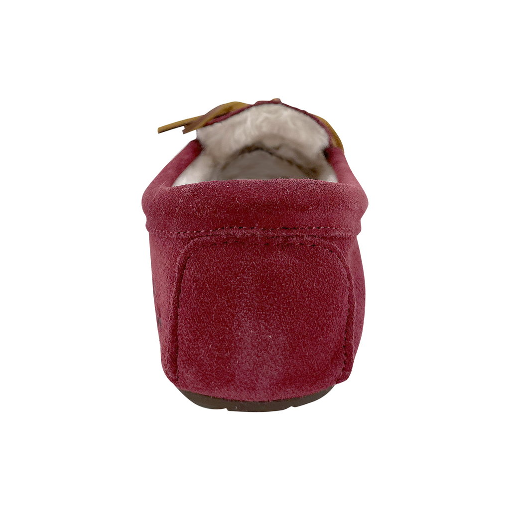 The fleece-lined Kayak Cozy moccasin is the cooler-weather cousin to regular summer moccasins. For an enjoyable read and additional product photos visit our blog, "Burgundy Mood" featuring these moccasins. From a stroll through the city to a forest trail, it carries you where you need to go with the warm fleece lining. Its Turtle rubber sole gives you a strong foundation and reliable traction. At the same time, traditional construction and soft, breathable cowhide suede leather make this moccasin the perfect everyday shoe. They come in a beautiful Syrah burgundy colour with beadwork designed by Oji-Cree artist Meagan Anishinabie. We carry these women's moccasin slippers in sizes 5 - 11. These moccasins fit small; order one whole size up from your usual shoe size. For half sizes, go up a half size. (8 ½ order size 9)