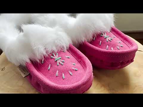 These rabbit fur moccasin slippers are easy to slip on and off, and we carry ladies sizes 4-10. These women's moccasins fit the same as your regular shoe size; for half sizes, order down to the nearest full size. (8 ½ or size 8).