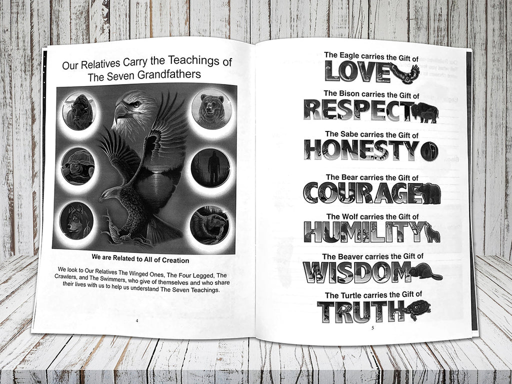 The Seven Teachings Workbook is a 36-page resource that introduces students (grades 4–8) or individuals to the Seven Grandfather Teachings: Love, Respect, Humility, Courage, Honesty, Wisdom, and Truth. Designed in an easy-to-follow format, it explains each Teaching in a clear, meaningful way and includes reflective activities that help them understand how these values show up in their own lives. Perfect for classrooms or home learning, this 8.5" × 11" workbook offers an engaging, age-appropriate way to explore Indigenous teachings and encourage positive character development.
